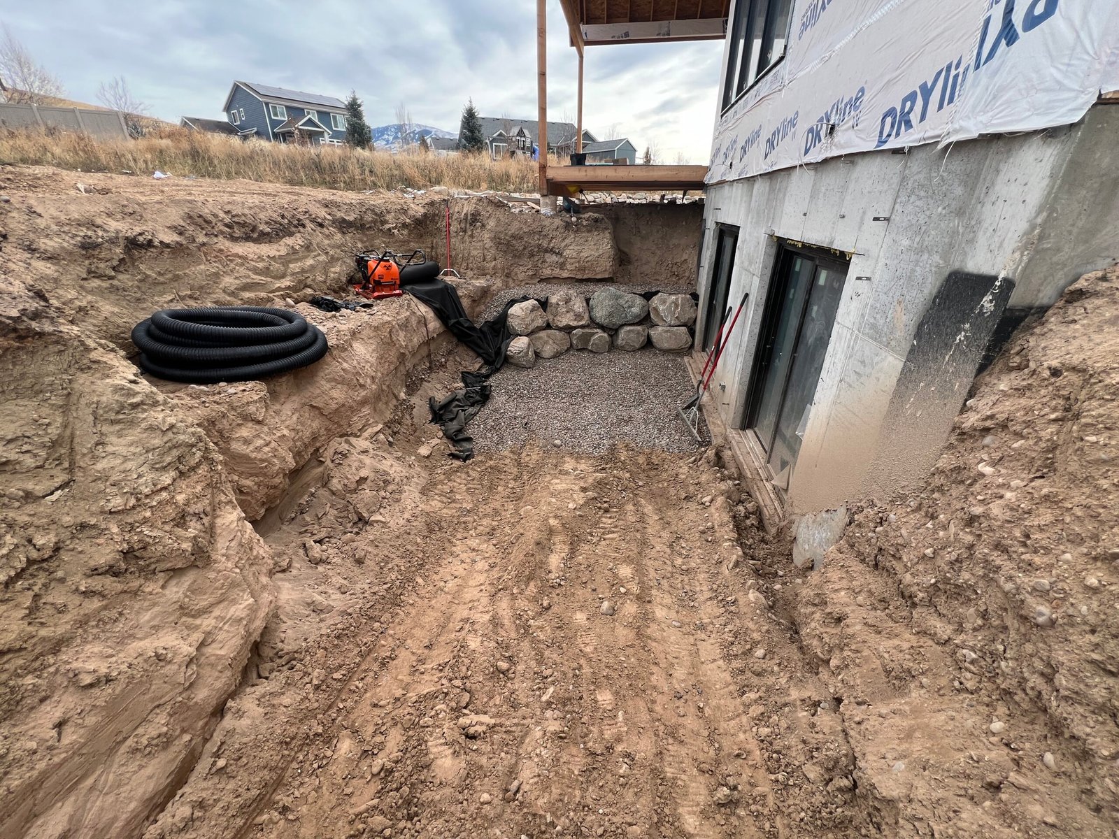 Excavation work aligned with water flow and runoff planning.
