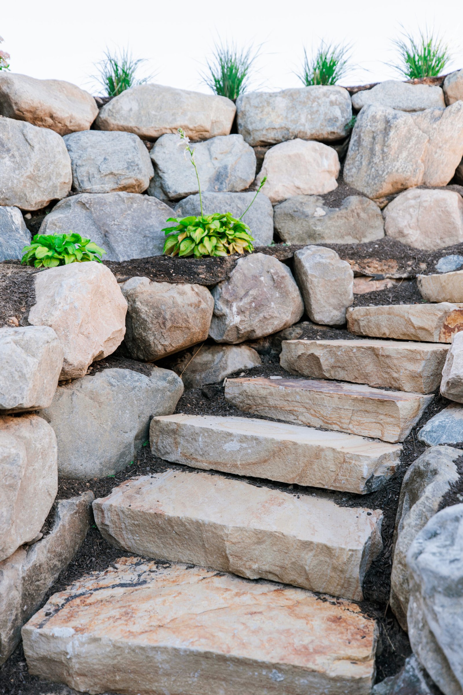 Retaining walls designed to manage elevation changes and stabilize soil.